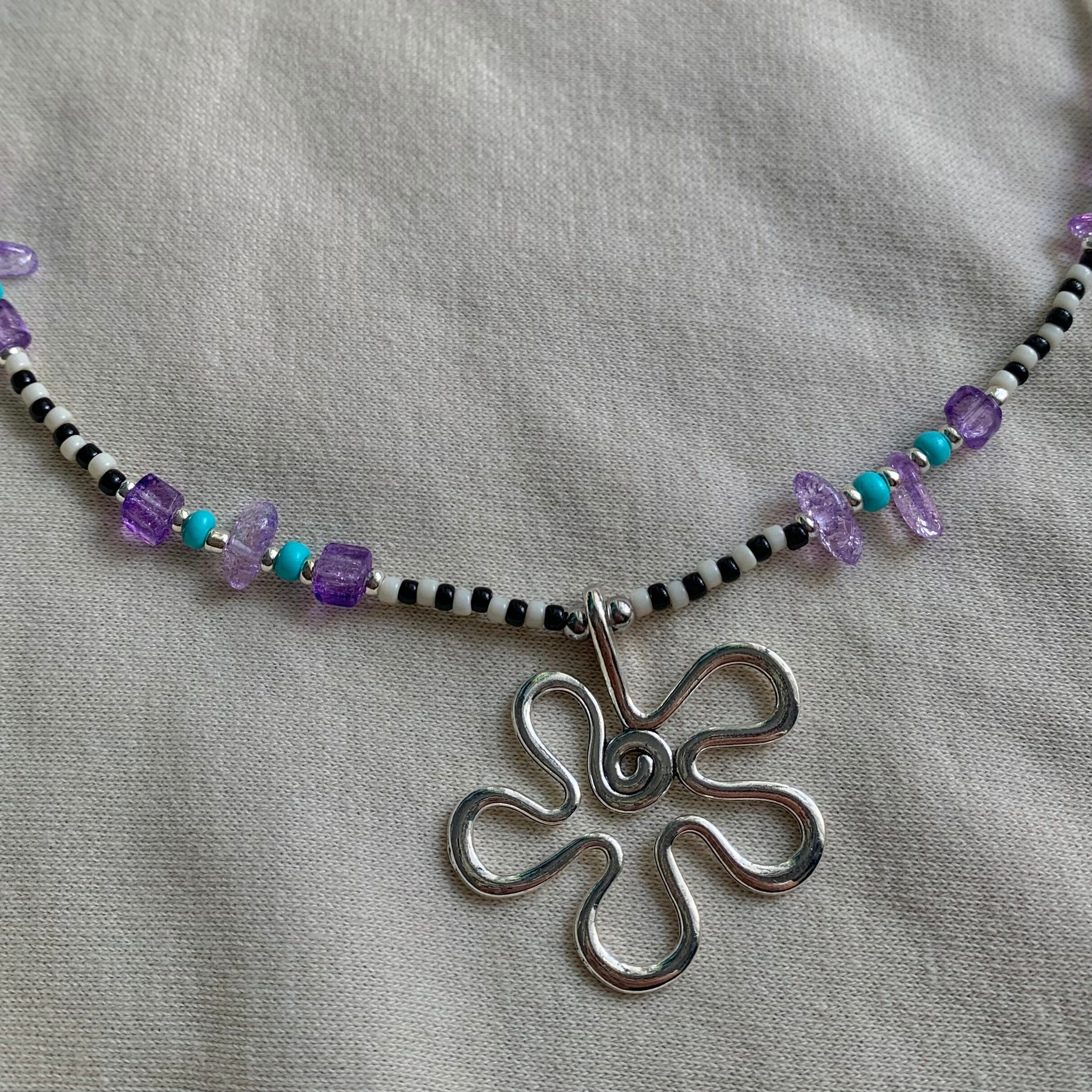 bw long flower necklace